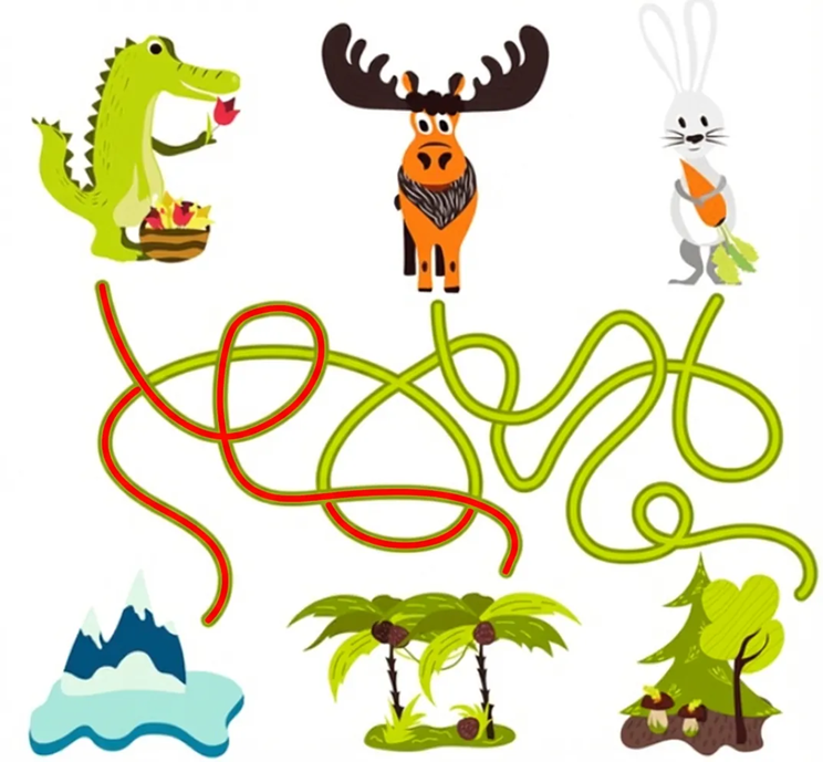 连线/绕线/轨迹题,答案编码在“连通性”里:人类是锁定一条线→穿过交叉→一路追到终点;模型往往把线翻译成“左/右/上/下”的离散步骤,一遇到交叉点就出现分叉爆炸,容易“换轨”追错线。