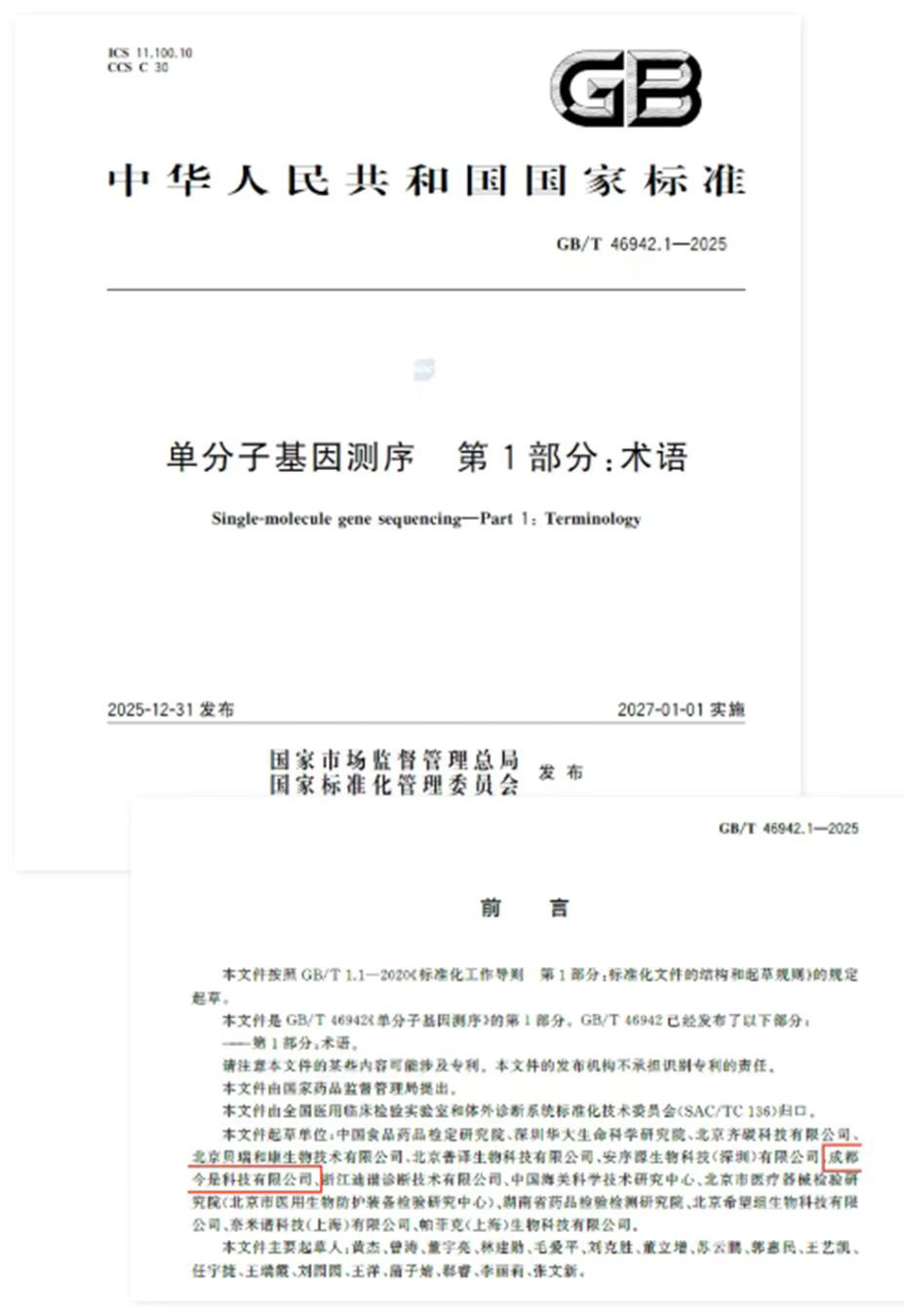 - 单分子基因测序国家标准发布,今是科技参与起草。
